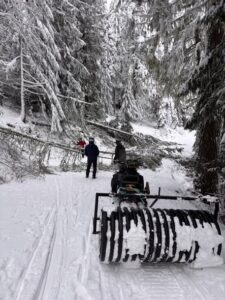 Grooming crew reported lots of down trees today at the Divide. They were able to clear the 377 road to Hume Road. About 10” of snow that packed down to 3-4” with the equipment. We’re working on getting some more folks out next week to get more trails cleared and packed. Beautiful conditions but be prepared to work around some down falls and grooming is limited to the 377 this weekend.